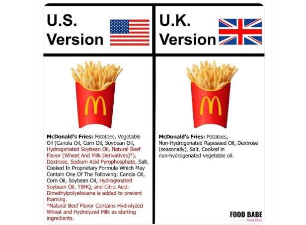 Many US, corporations such as McDonald’s comply with healthier food guidelines required by other countries while continuing to produce food of lesser quality for the US.